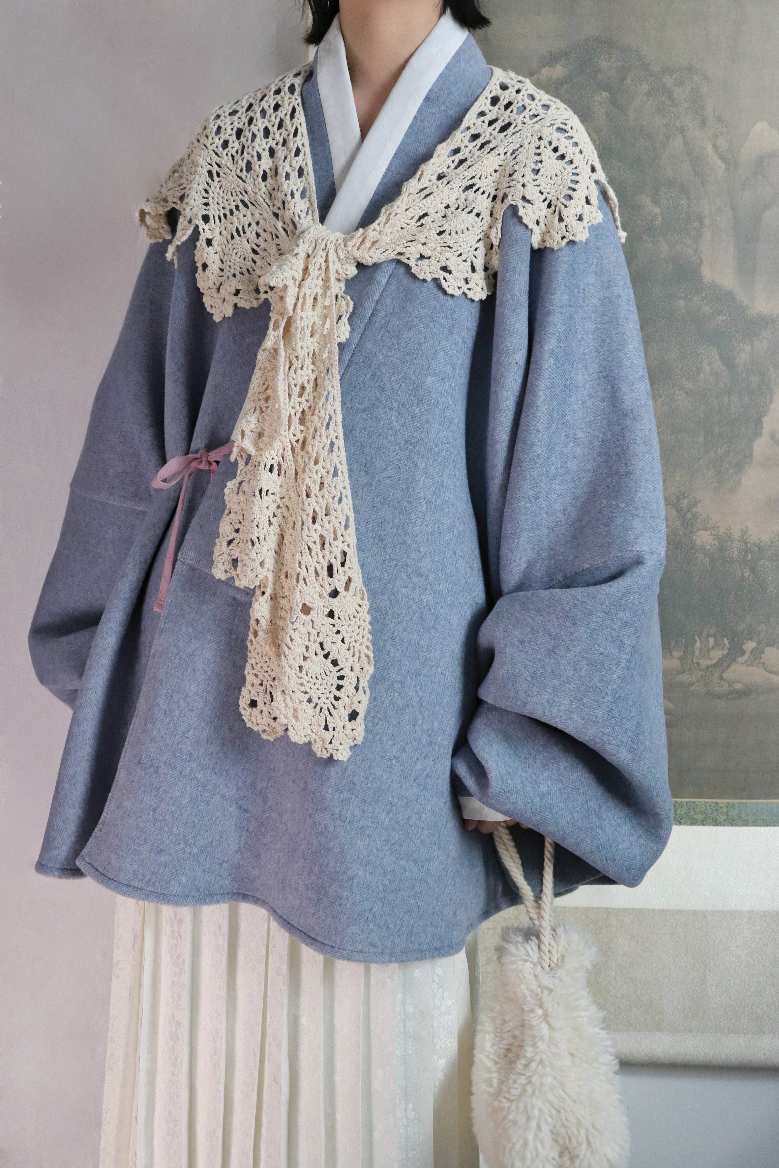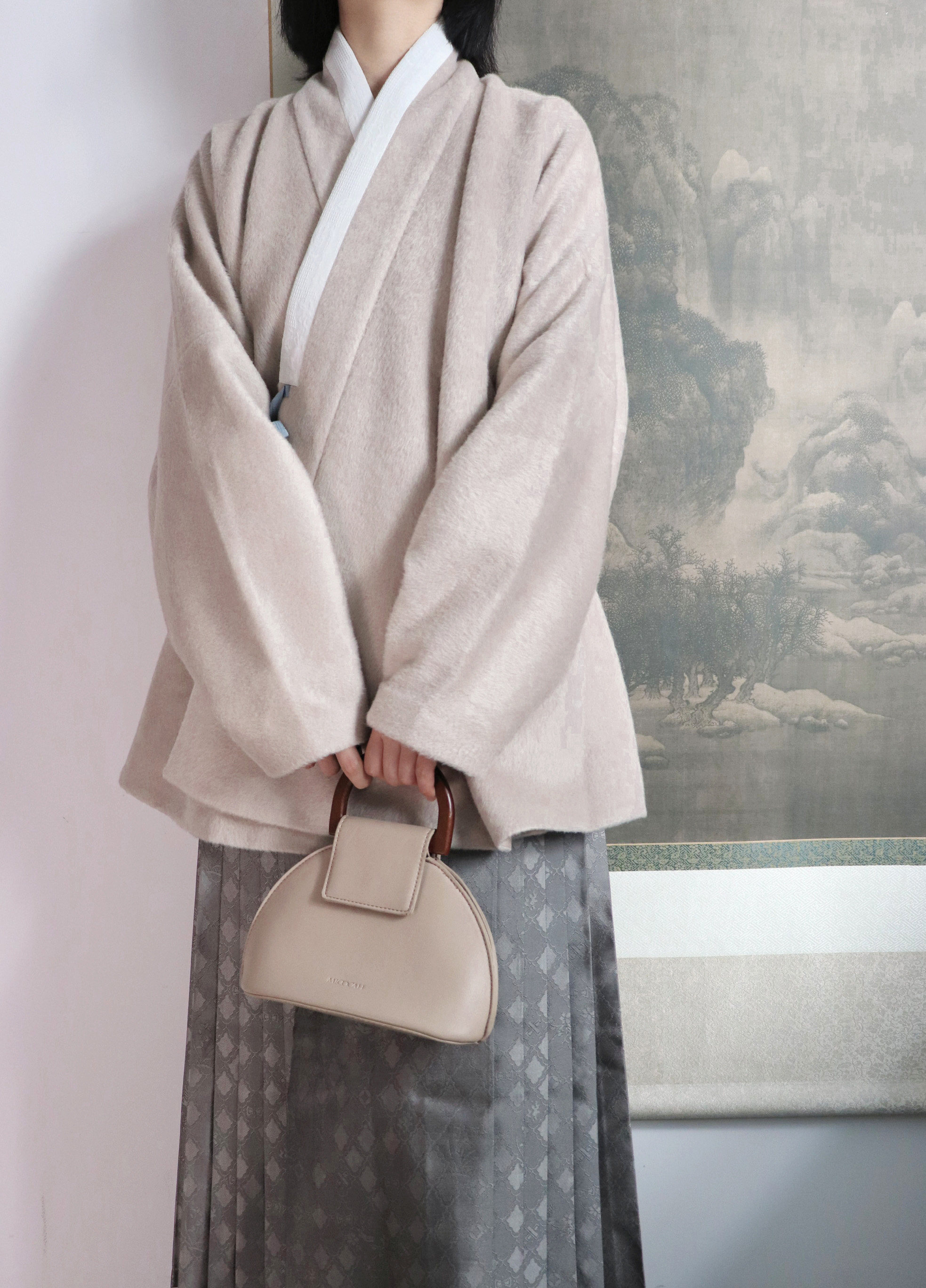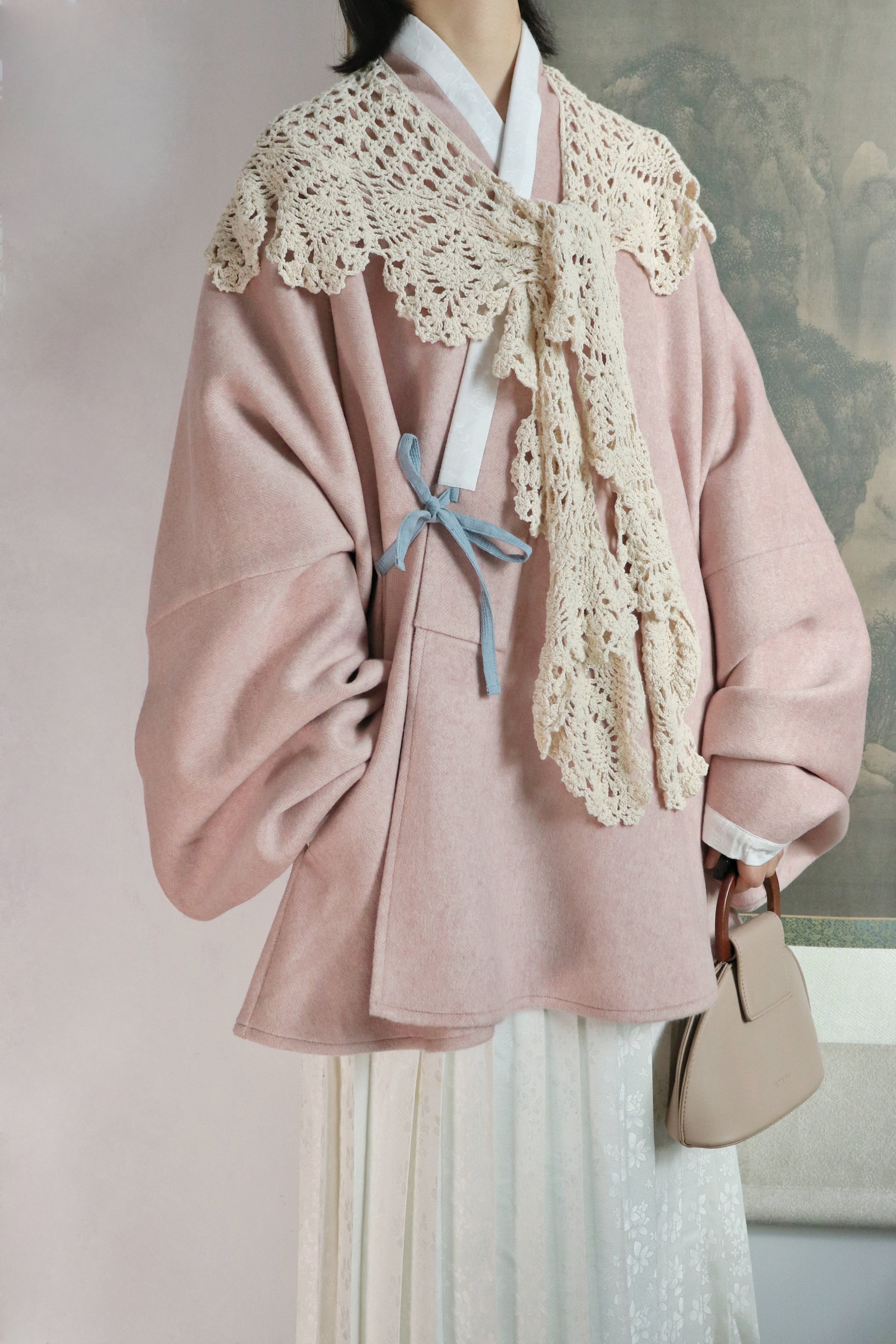对穿交中长袄 原创日常秋冬羊毛呢明制大放量琵琶袖 裳裳者华 晴空