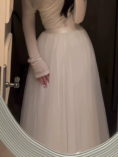 李多海纯色长纱裙A字大摆网纱蓬蓬裙 明星同款 时尚 潮品秋冬新款
