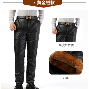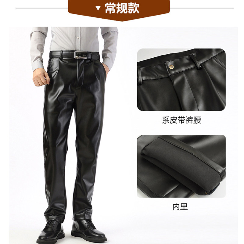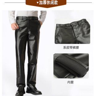 宽松工作保暖休闲男裤 子加绒加厚摩托机车PU裤 皮裤 秋冬中老年男士