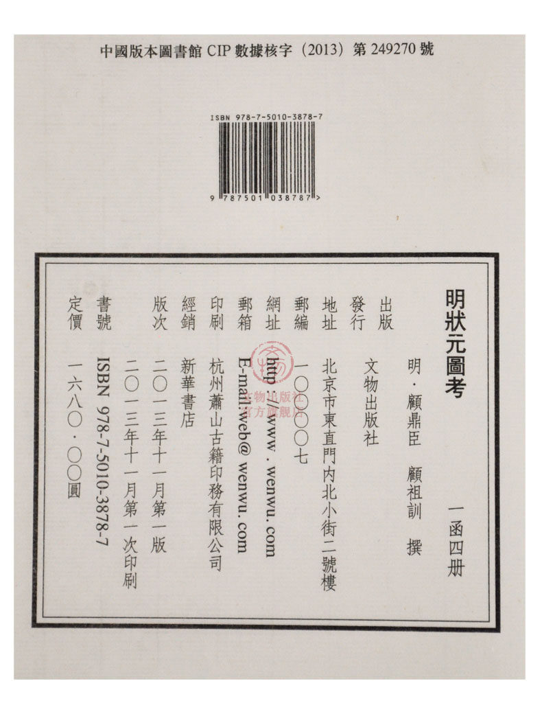 颜鼎臣 社官方旗舰店 古籍 文物出版 撰 颜祖训 明 一函四册 线装 图考 明状元