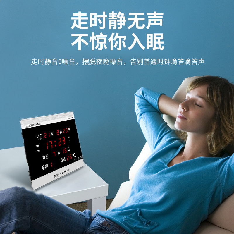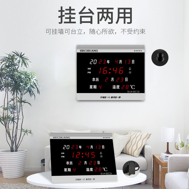 万年历客厅挂钟卧室电子闹钟创意夜光座钟HEC03 LED数码 河创 新款