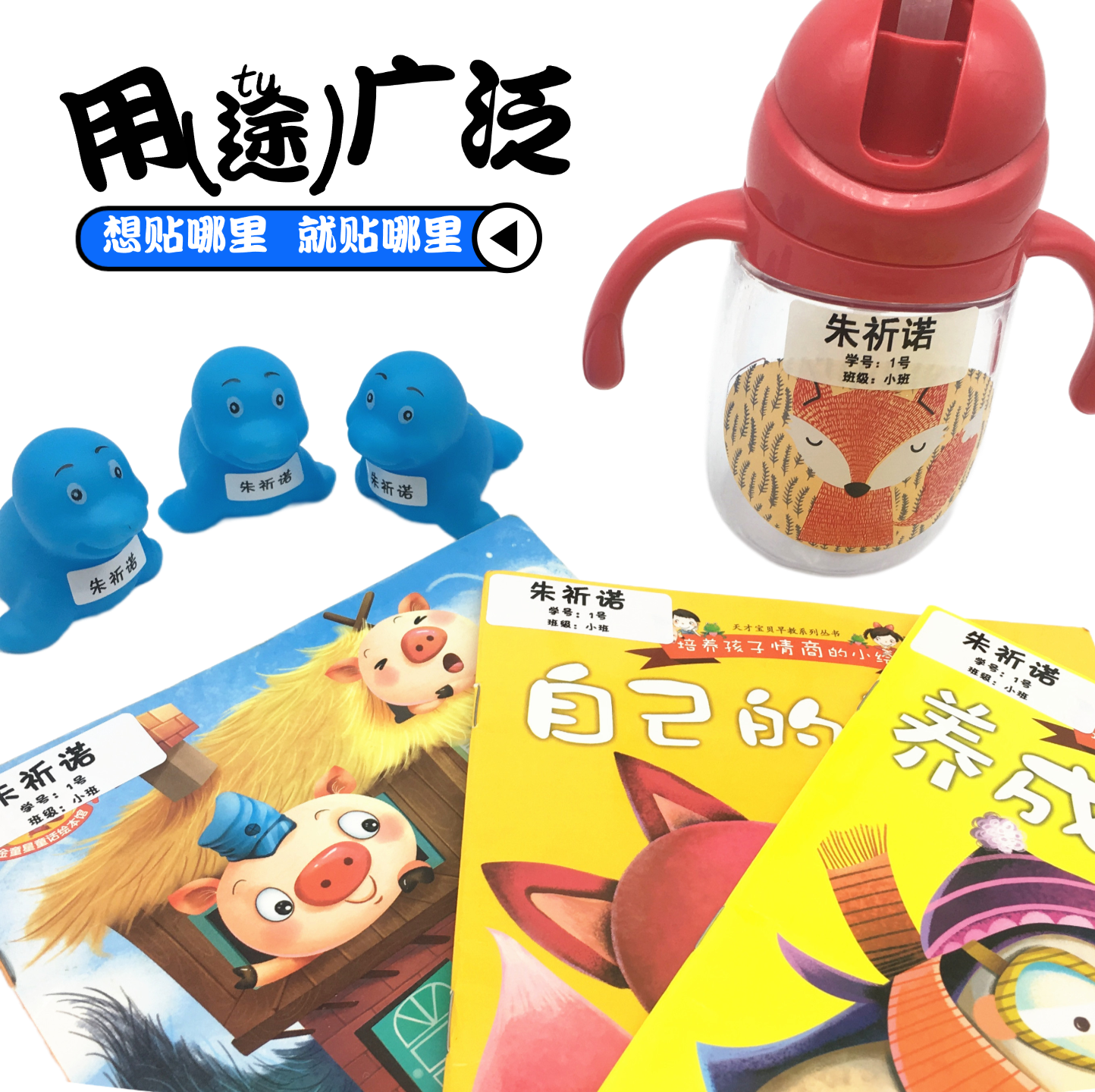 防水耐磨姓名贴纸幼儿园宝宝儿童名字贴纸学生水杯文具名字条定制