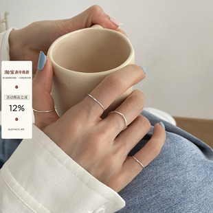 suzyacc kr韩国东大门S925银饰ins风单素圈细戒指女纯银光板混搭
