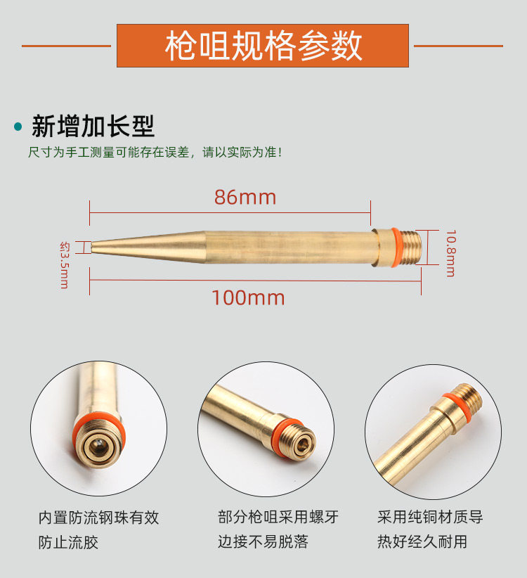 加长热熔胶枪嘴胶枪配件1mm小口径出胶嘴细枪头 长嘴胶枪铜嘴通用