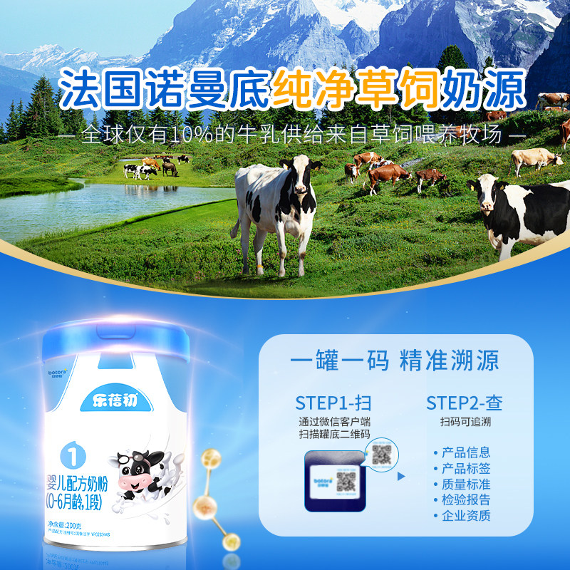 6个月200g 贝特佳旗舰店乐蓓初婴幼儿新国标牛奶粉1段0 U先