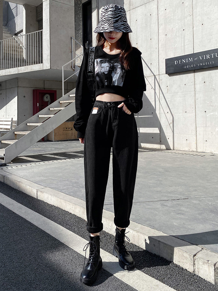 松紧腰哈伦萝卜裤 女胖mm显瘦2025秋冬新款 老爹牛仔裤 加绒高腰大码