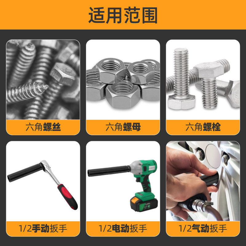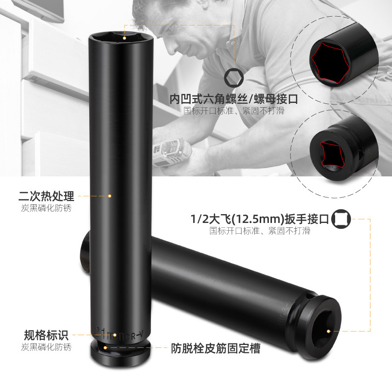 8套筒头子套筒头6角长套筒板头 加长套筒头3 希孟 中飞套筒头套装