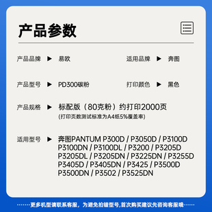 P3000D P3405DN M6202W 300H墨粉打印机硒鼓碳粉墨粉 P3500DN P2550 P3205 易欧适用奔图M6202 P3500