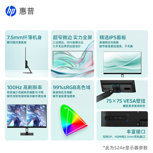 电脑可2K显示屏 惠普显示器屏幕轻薄办公设计台式 政府补贴15%