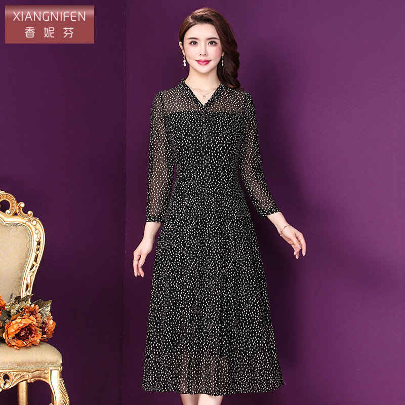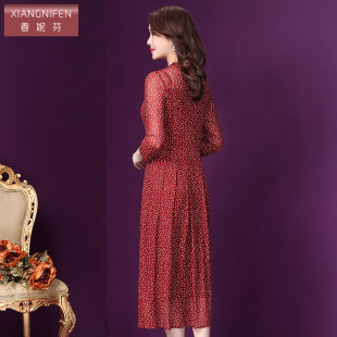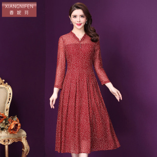 香妮芬贵夫人碎花连衣裙高端洋气减龄2026新款 台湾纱中年中长裙子