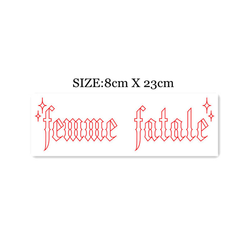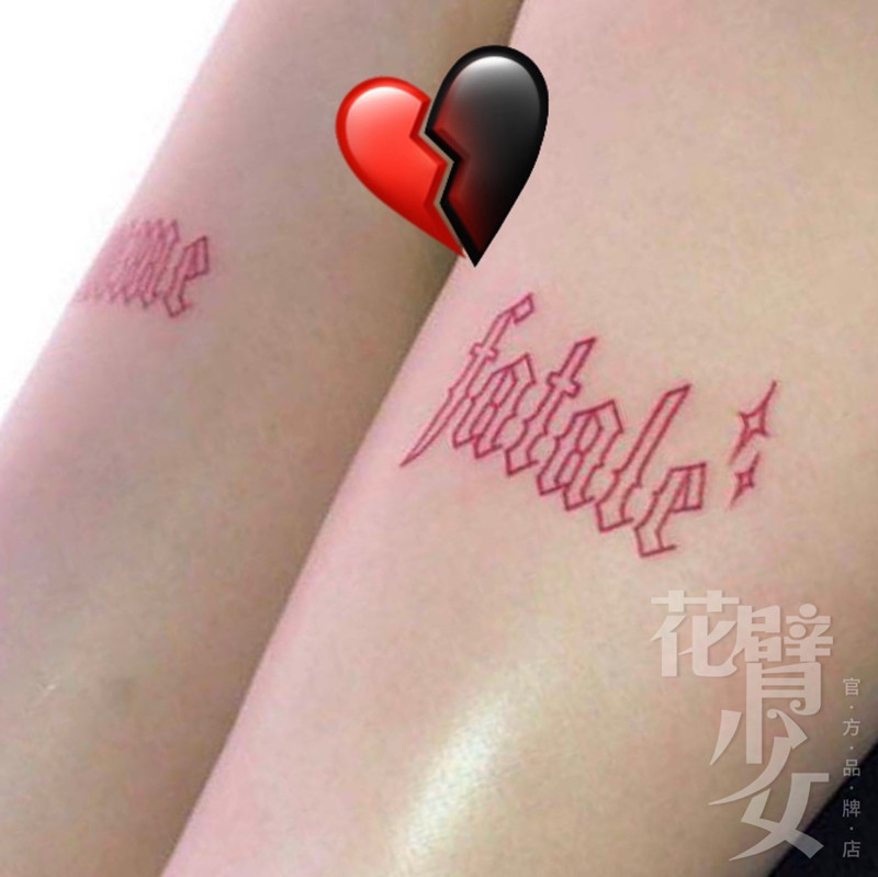 花臂少女TATTOO fatale纹身贴刺青 Z51暗黑红色哥特线条字母famme