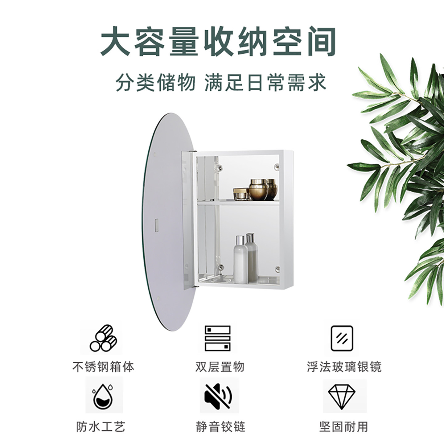 浴室镜柜简约挂墙式 镜箱收纳分层架洗手间梳妆防水镜子卫生间