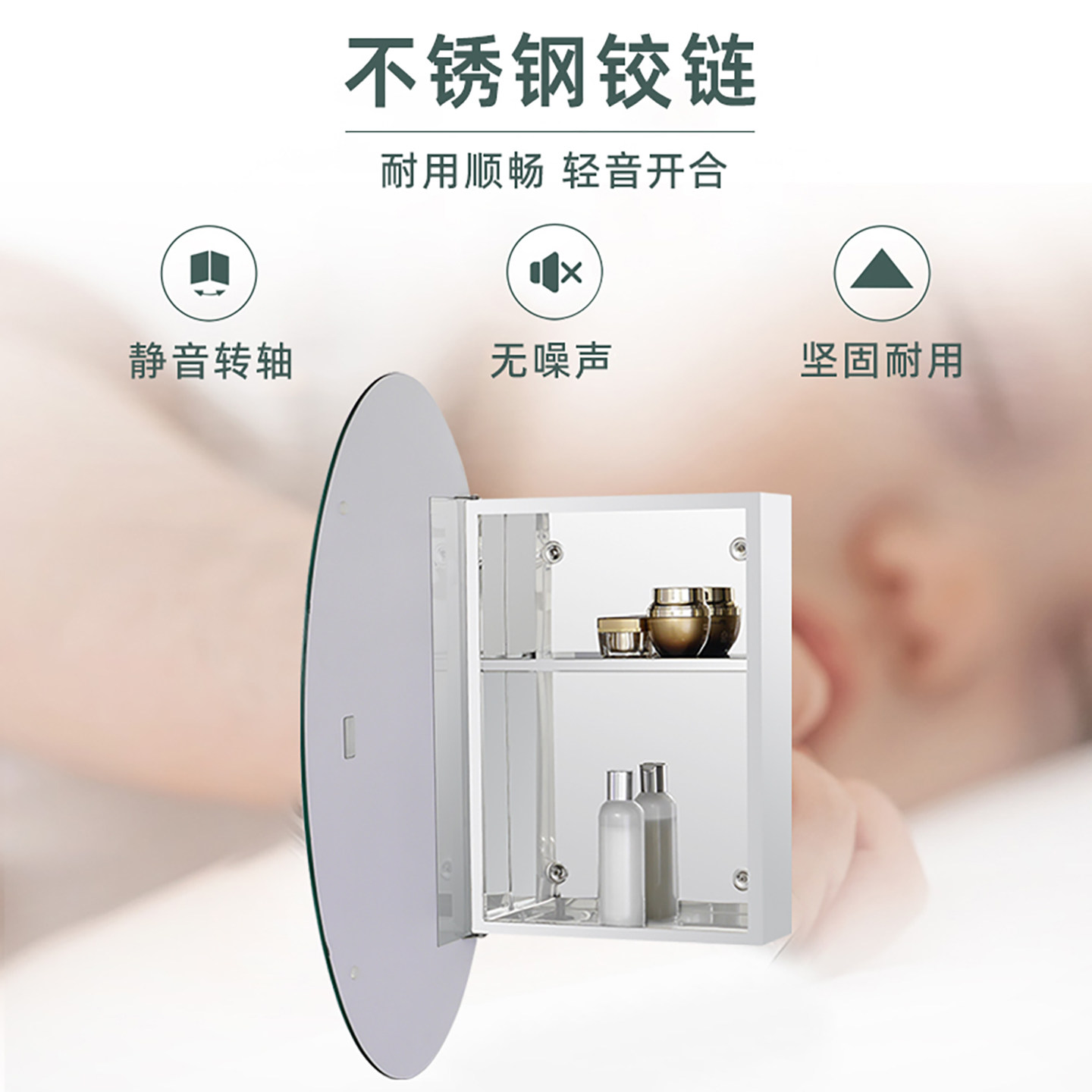 加高圆弧智能浴室镜柜卫生间美妆收纳一体镜子带插座置物架太空铝