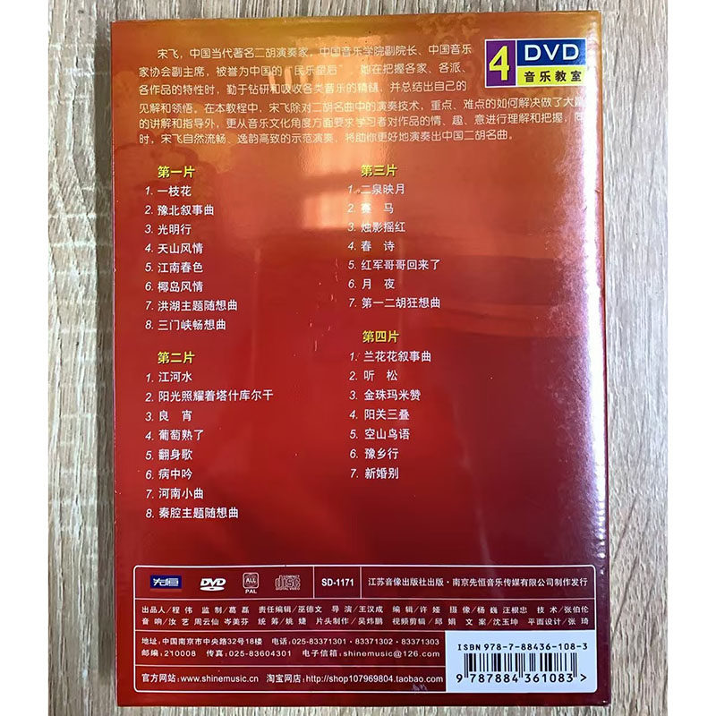 正版 宋飞中国二胡名曲指导自学视频教程演奏教学4DVD光盘碟片