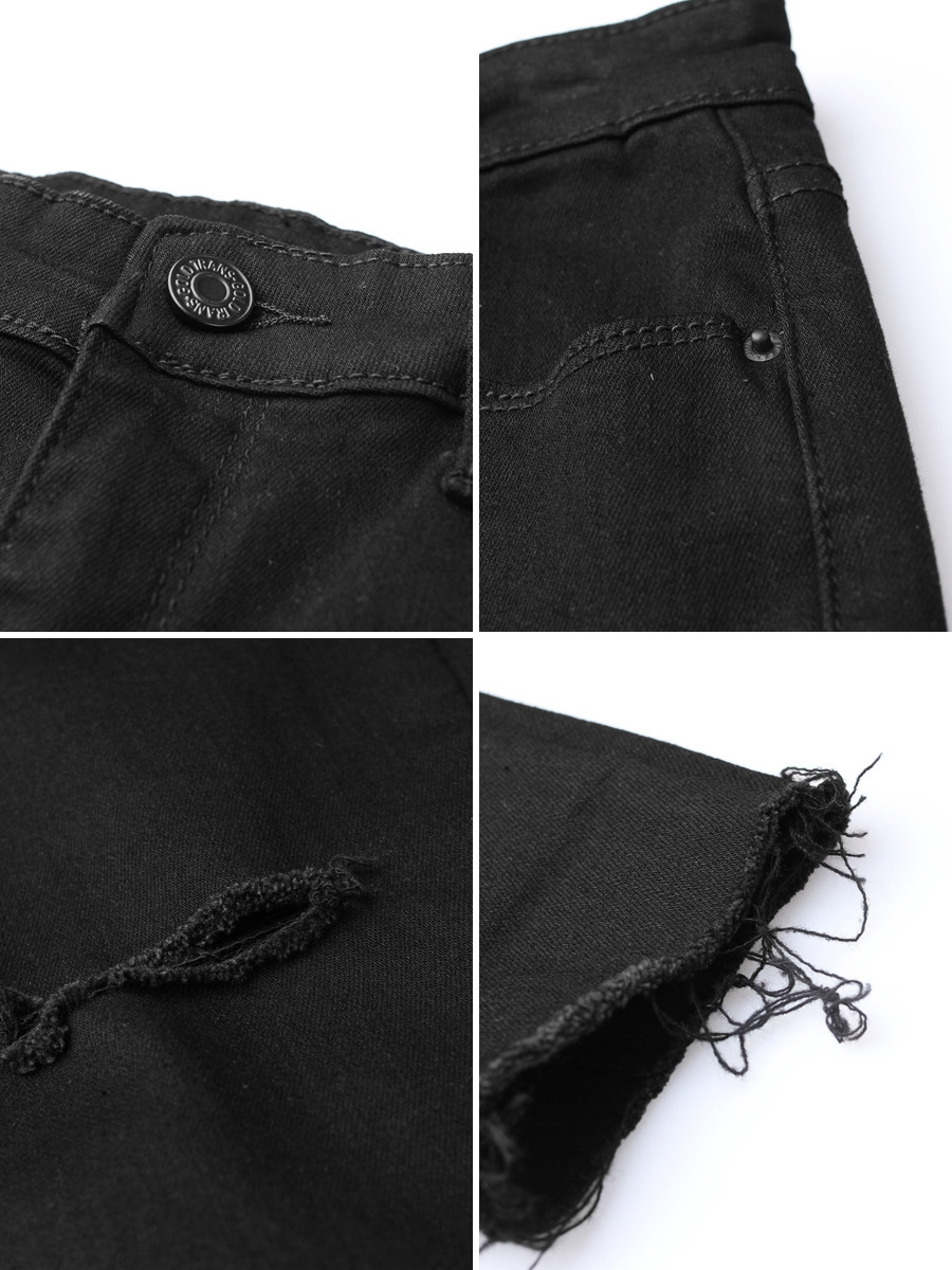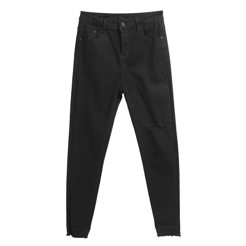 女胖妹妹遮肉显瘦七分小直筒裤 夏季 高腰弹力破洞牛仔裤 大码 潮 薄款