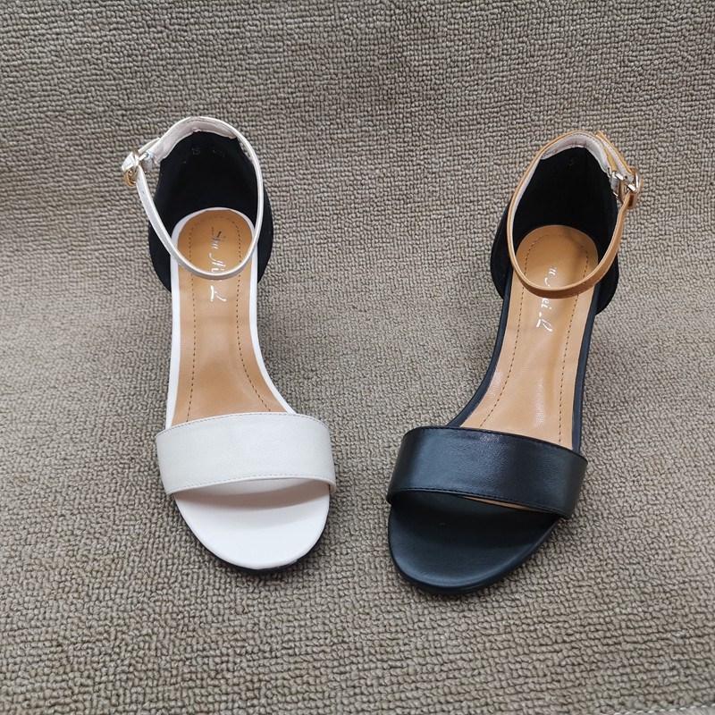 优雅高跟百搭牛皮女凉鞋 露趾时尚 2020春新款 撤柜处理折扣真皮女鞋