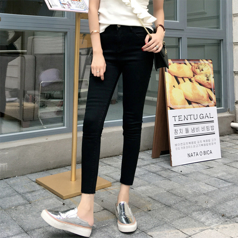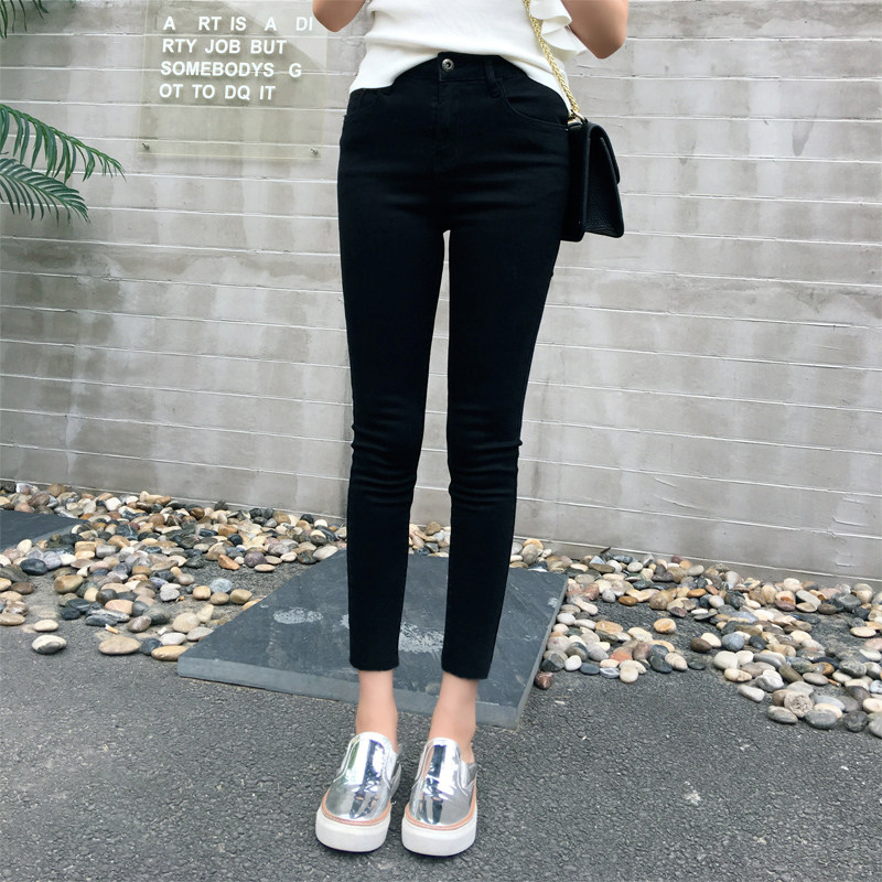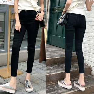 新款 显瘦2024春装 小个子八九分高腰铅笔紧身小脚 女修身 黑色牛仔裤