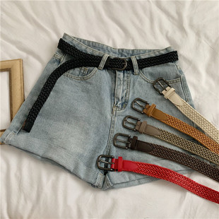 饰学生百搭裤 编织麻绳腰带女韩版 皮带复古装 夏牛仔裤 带黑色细 时尚