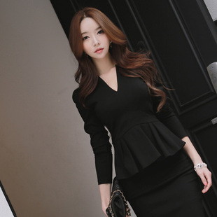 OL职业女装 荷叶摆显瘦包臀套装 套裙两件套 长袖 裙装 大码