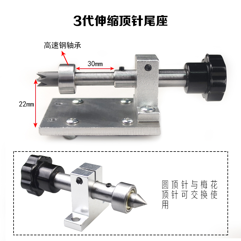 DIY可伸缩木工车床顶针车床钻孔尾座自制佛珠车床配件回转顶针