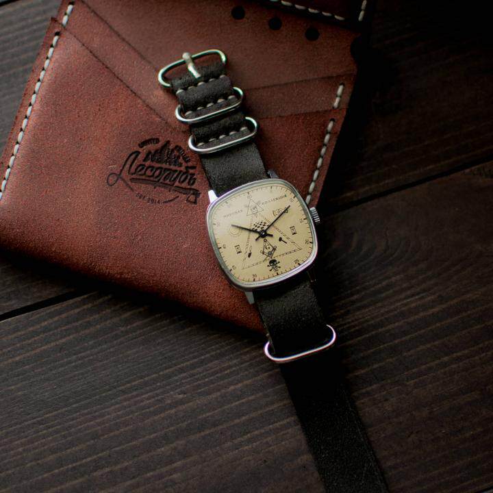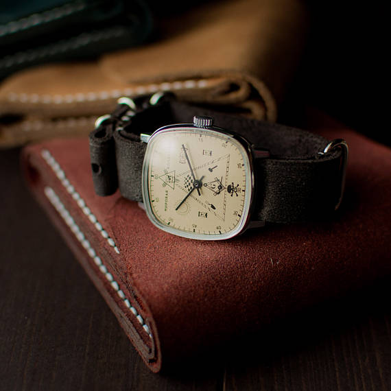 手表机械腕表 方形真皮男士 乌克兰代购 Rare◇古着复古共济会个性