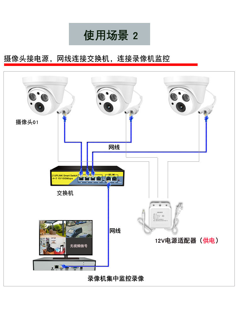 接录像机监控室内有线插网线半球吸顶圆形广角高清夜视ipc摄像头