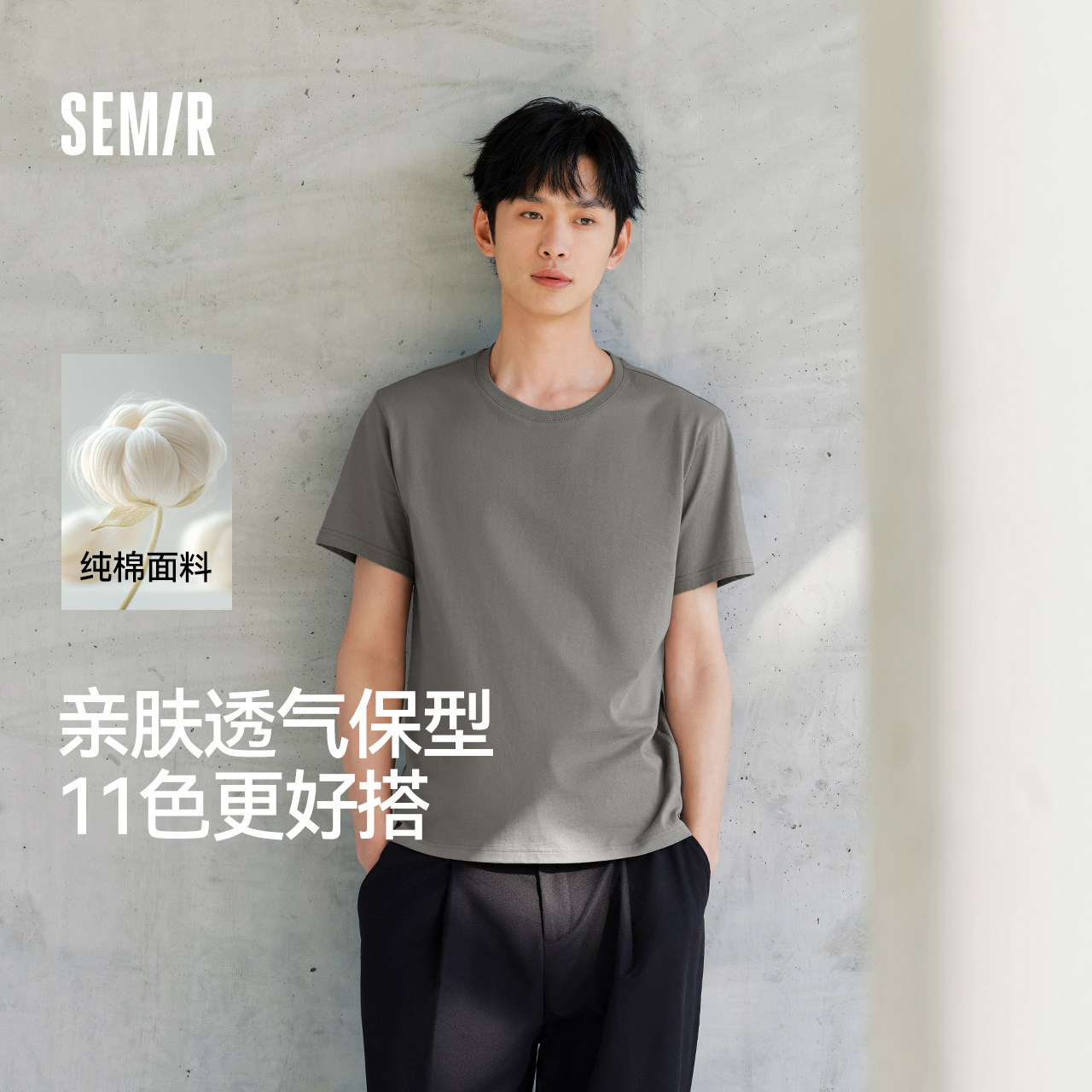 可选内搭白色打底衫 森马短袖 基础超大码 情侣男士 爆 t恤男纯棉夏季