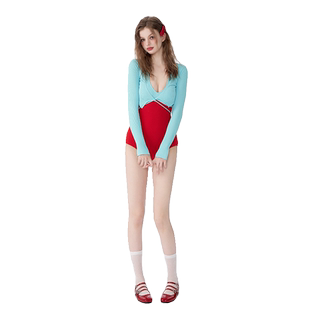 防晒罩衫 泰国长袖 小胸聚拢网红度假连体泳衣女夏 宋茜同款 假面猫