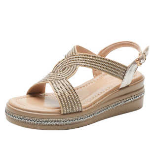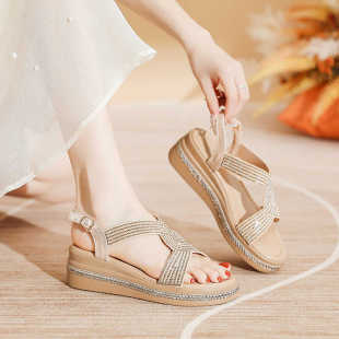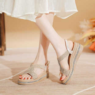 水钻厚底增高百搭女鞋 百丽夏2026夏季 女时尚 小香风坡跟凉鞋 子 新款
