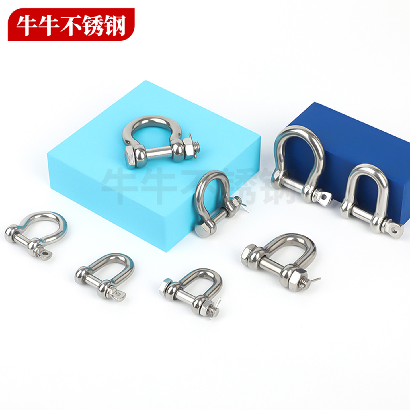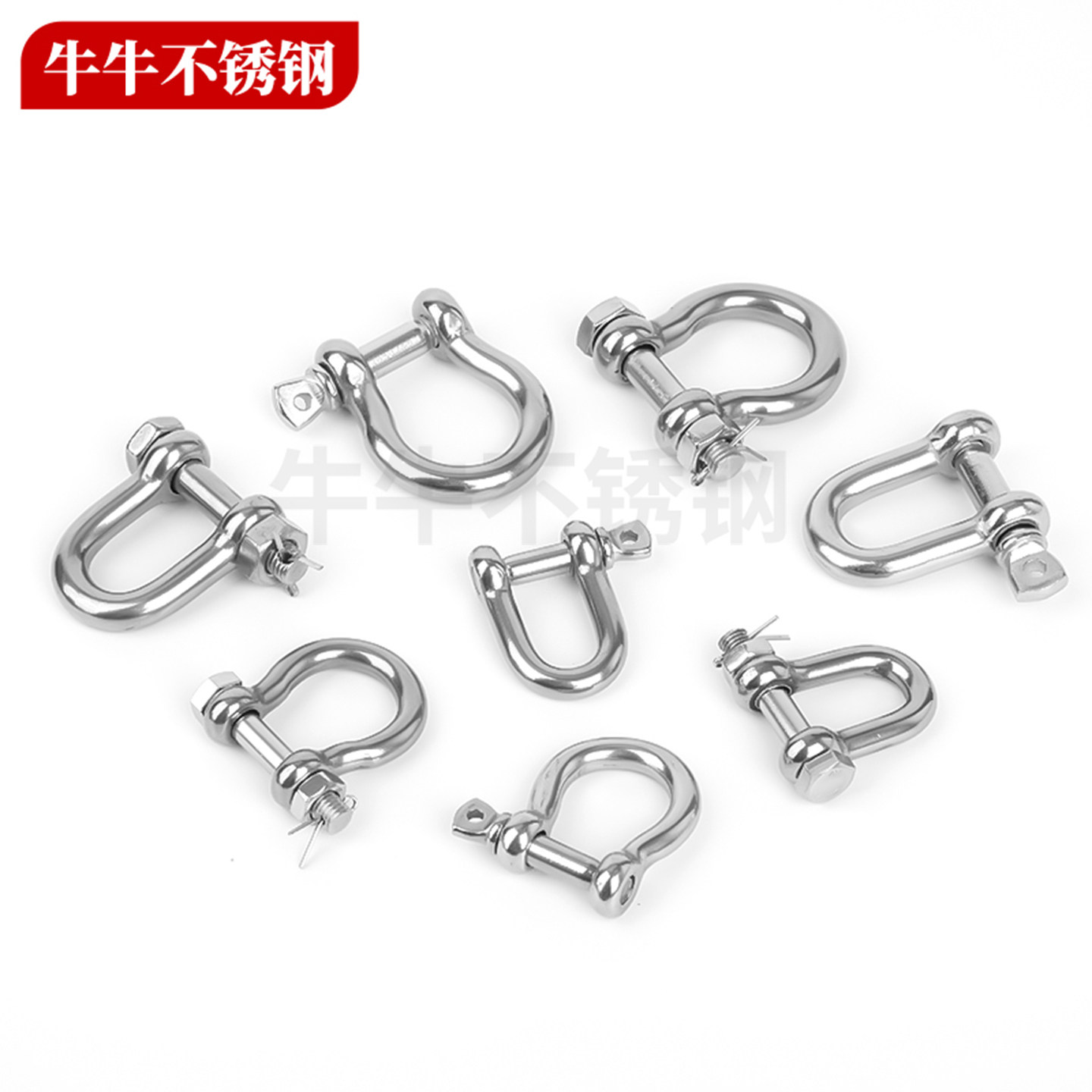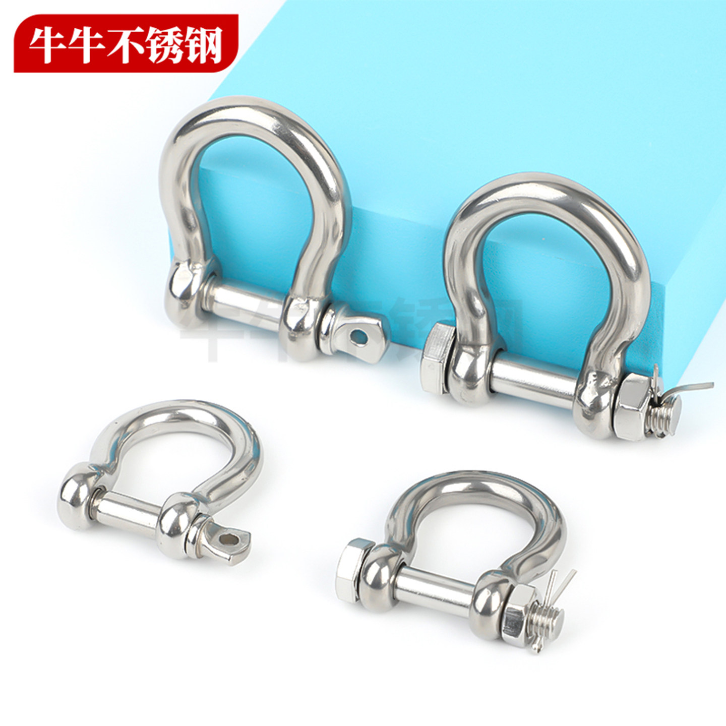 304 马蹄形卸扣 316不锈钢卸扣D型保险U型带螺母起重弓型弓形美式