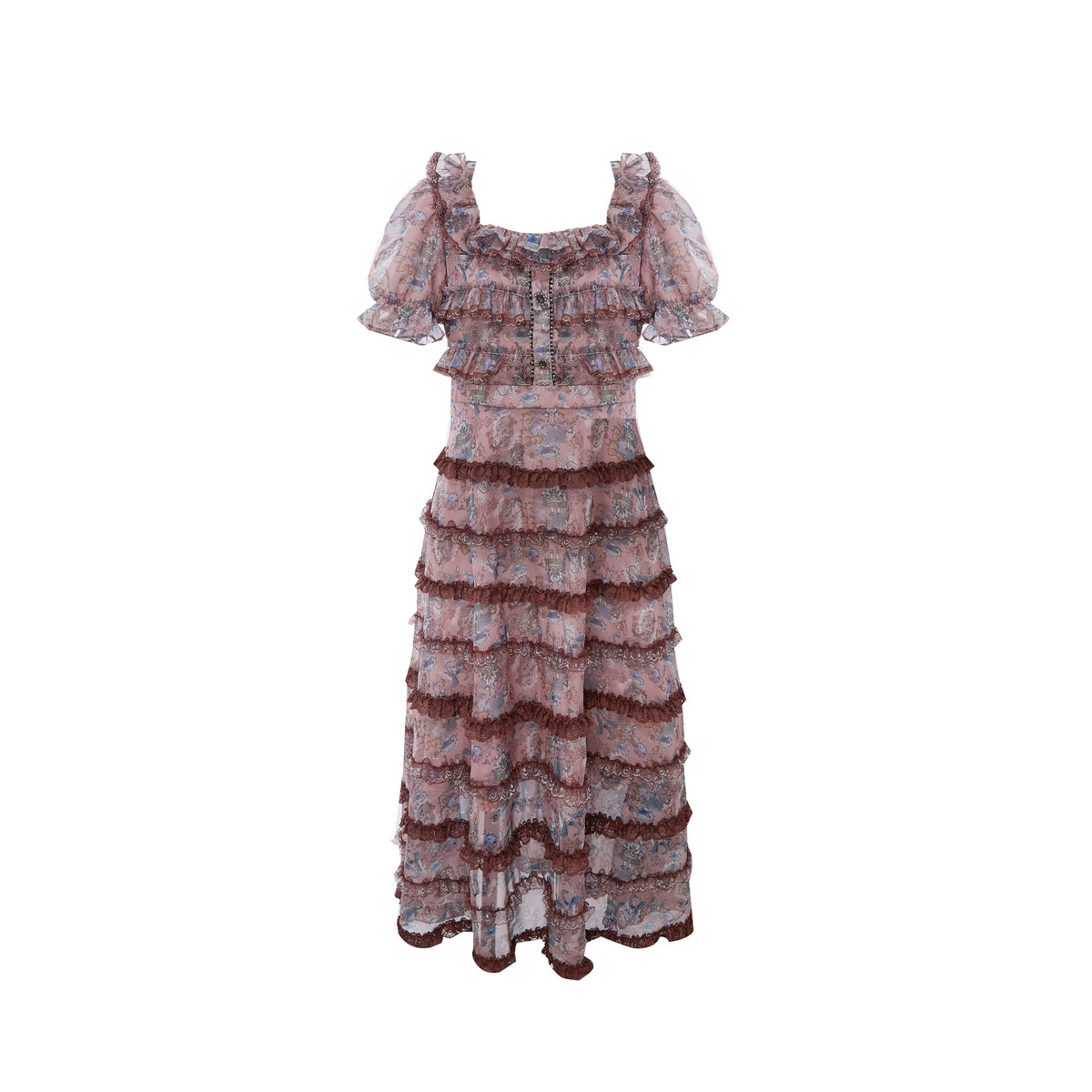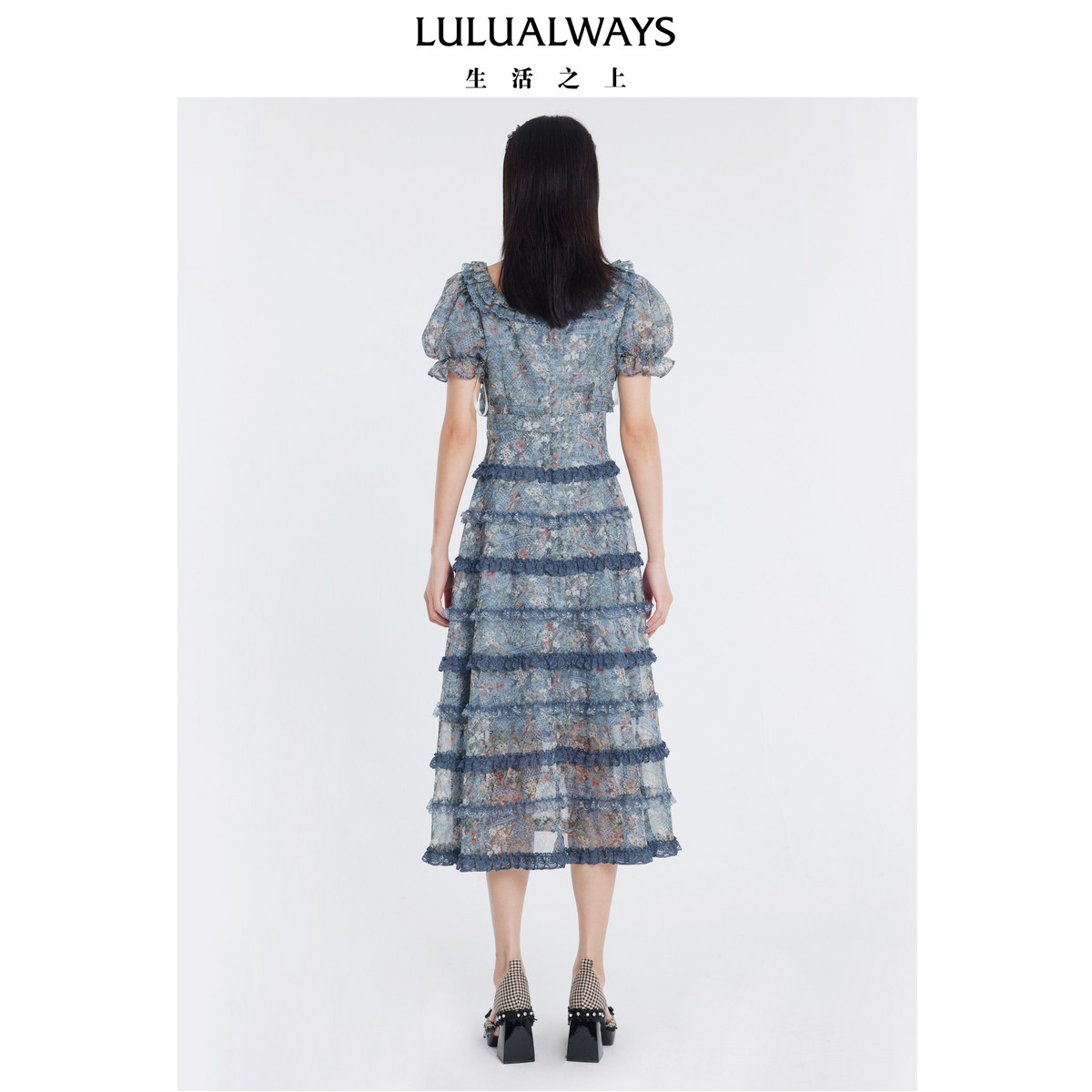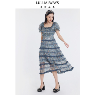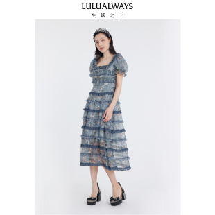 连衣裙 氛围感欧根纱印花蛋糕裙长款 LULUALWAYS我爱露露夏季 新款