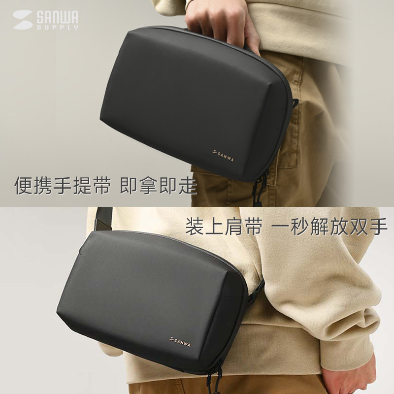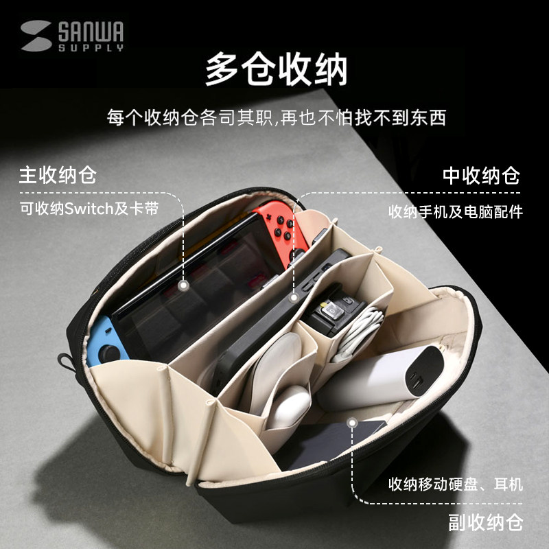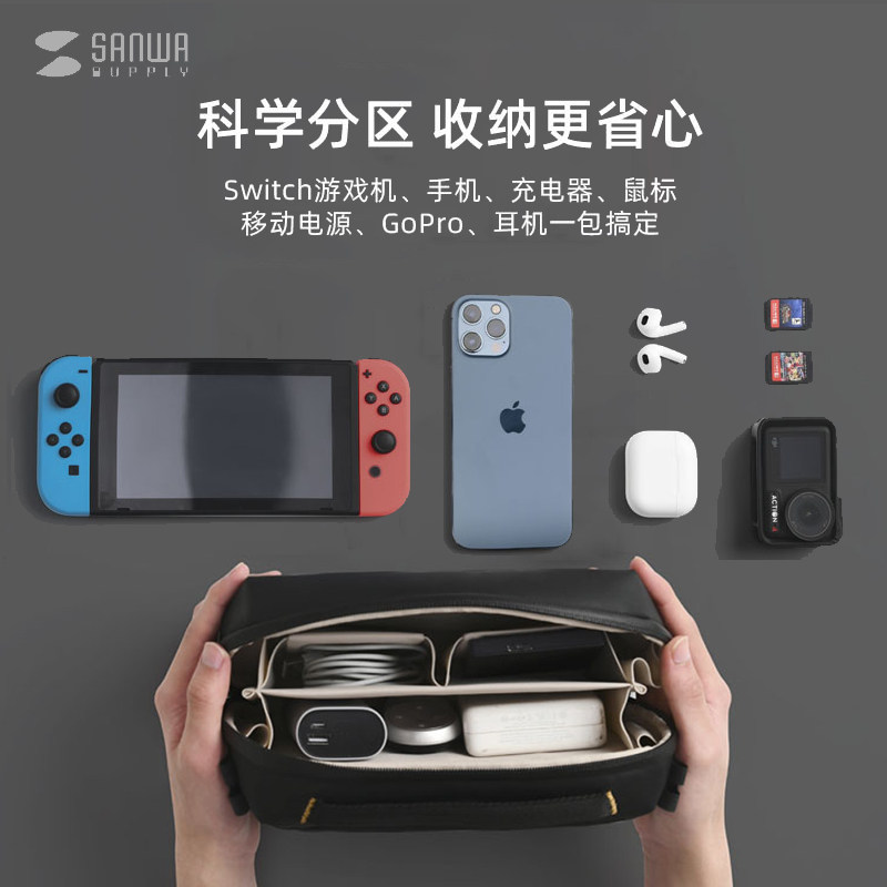 日本SANWA数码 收纳包防水防震大容量便携小挎包卡带盒switch收纳包ns保护套充电器数据线内存卡多功能整理袋