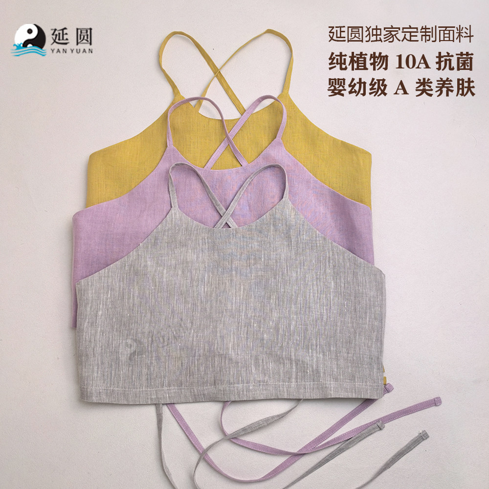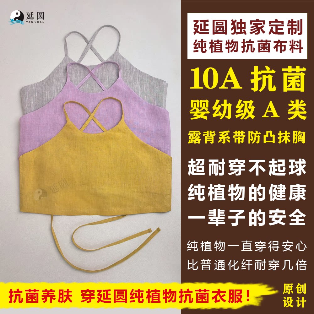 延圆纯大麻10A抗菌露背防凸点抹胸系带美背婴幼级养肤纯汉麻肚兜