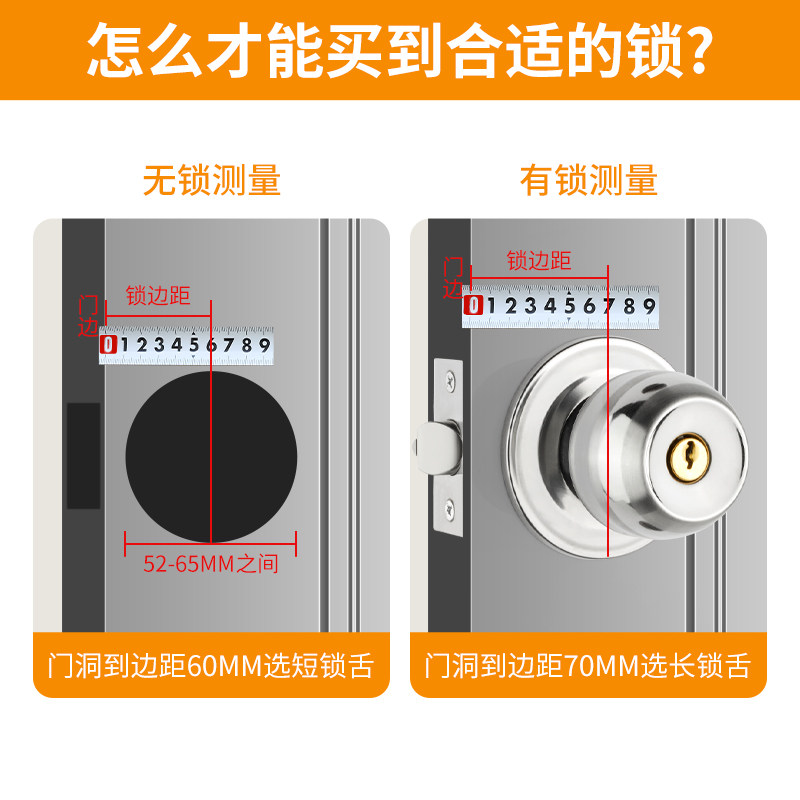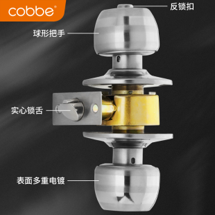 卡贝门锁家用通用型球形锁室内卧室卫生间老式 房门木门不锈钢圆锁
