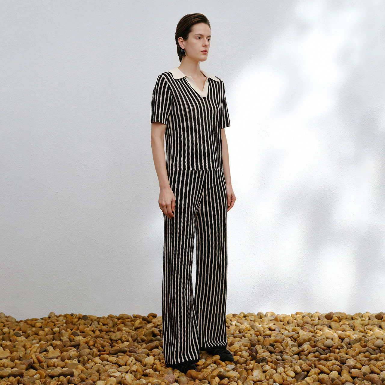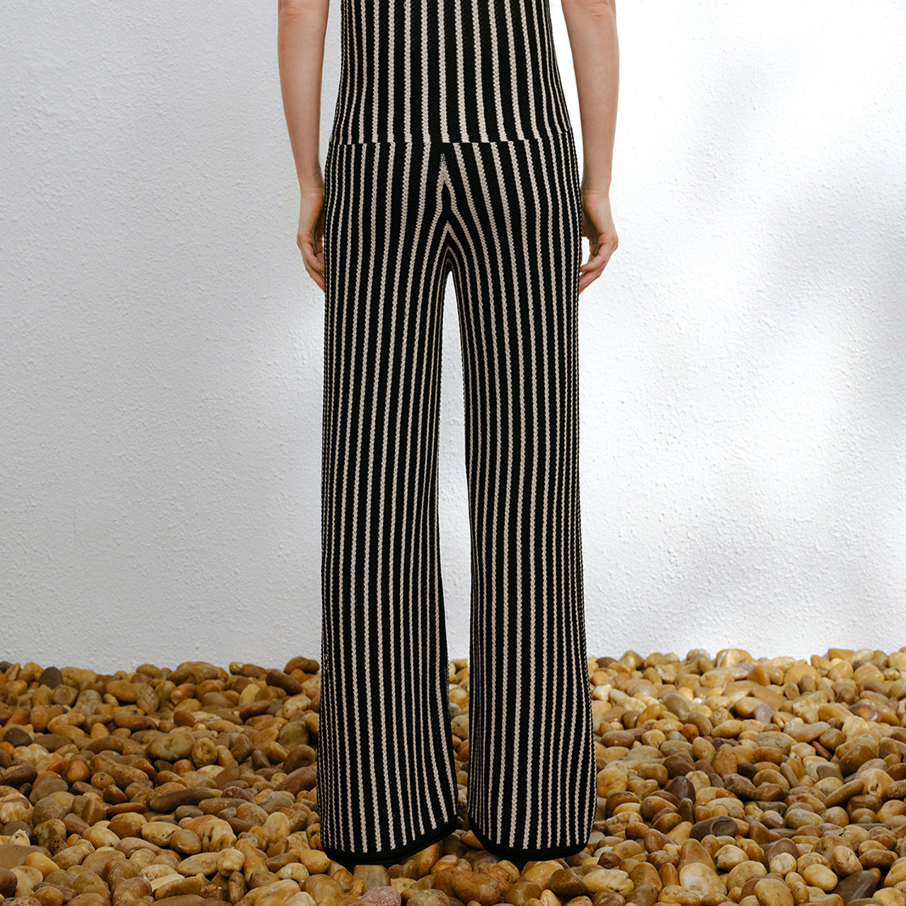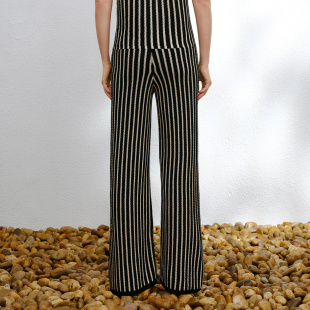 电商专款 长裤 IMM尹默女装 针织休闲裤 夏 高腰条纹阔腿裤