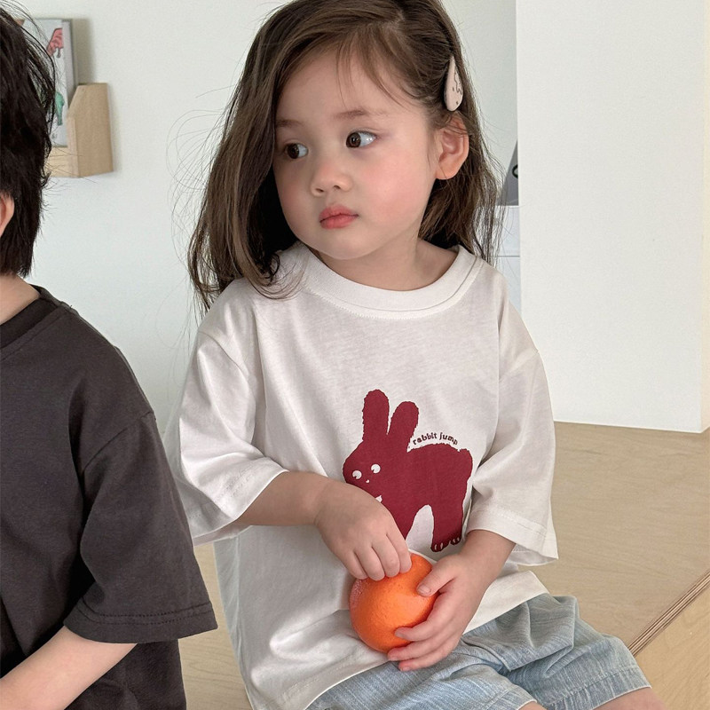 衫 男女宝宝洋气可爱半袖 上衣 t恤夏季 中小童纯棉舒适百搭圆领短袖