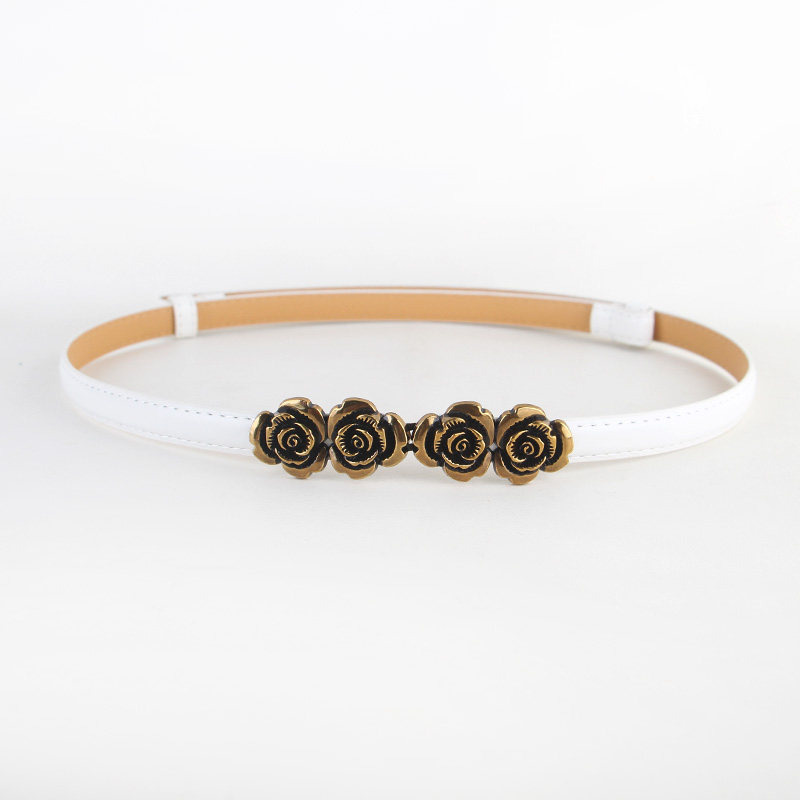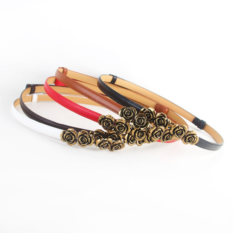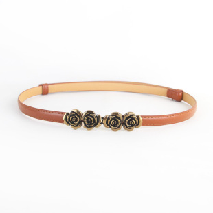 饰小皮带潮 百搭装 新款 复古玫瑰花对扣可调节细腰带女配连衣裙衬衫