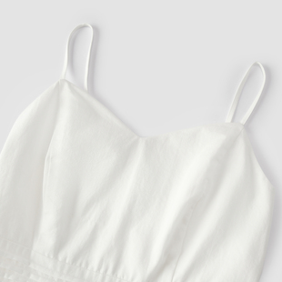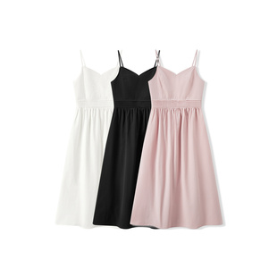 森马连衣裙女纯色中长裙温柔优雅V领吊带裙浅春系Dress light
