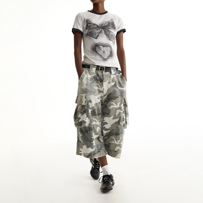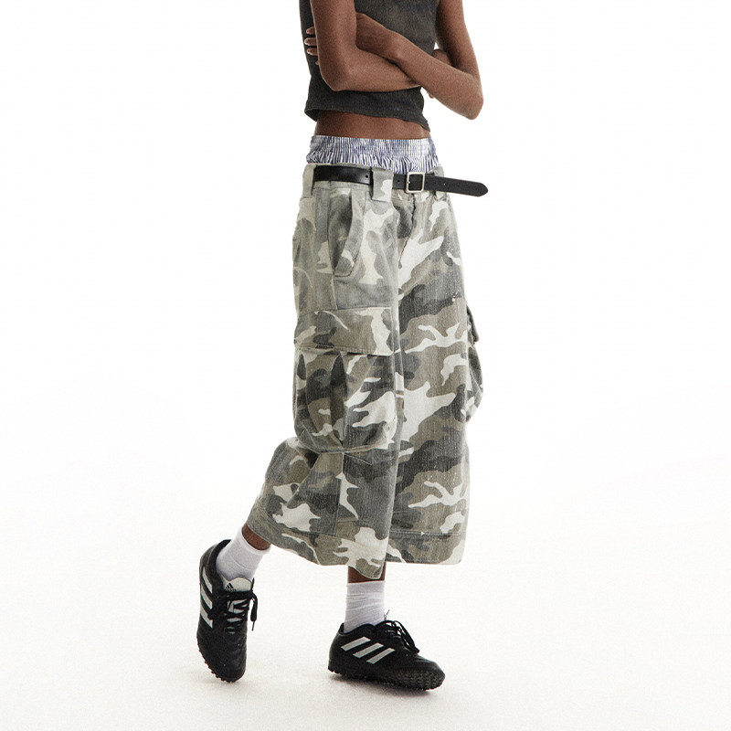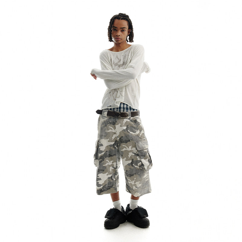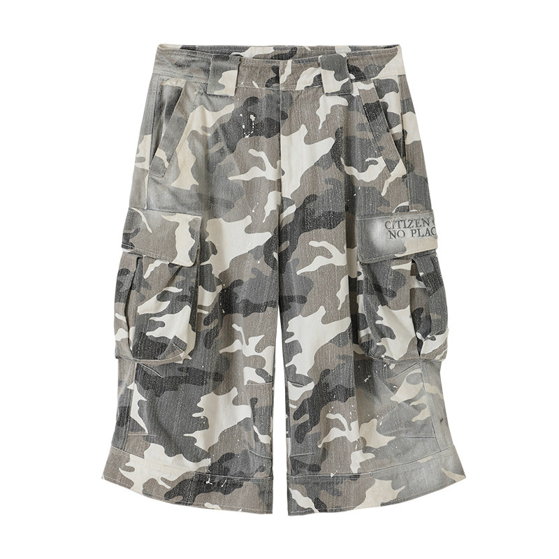 磨损迷彩油漆工做旧喷染七分短裤 CONP Pants Camouflage 24SS