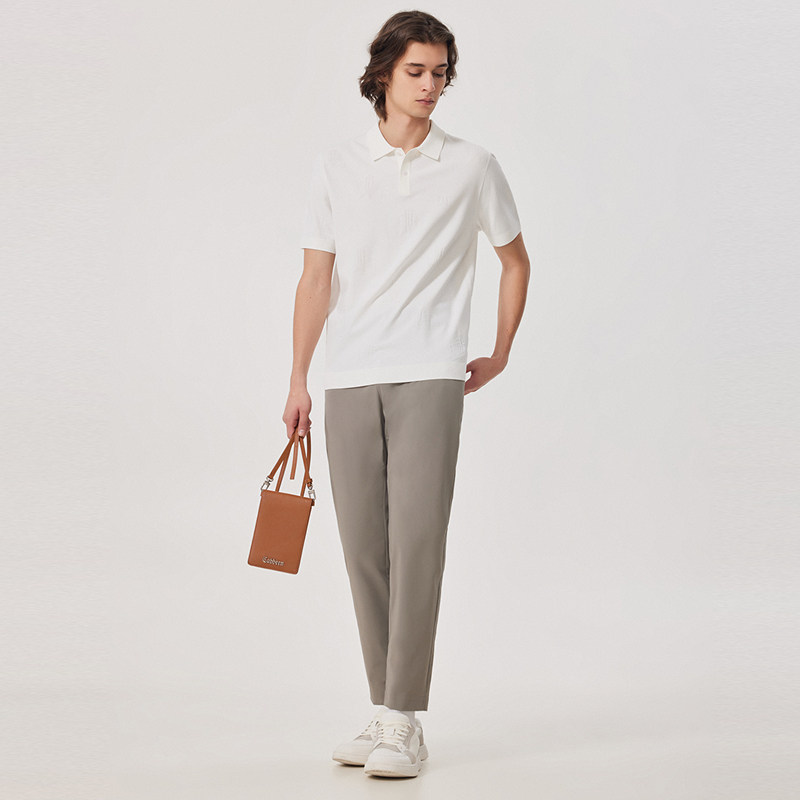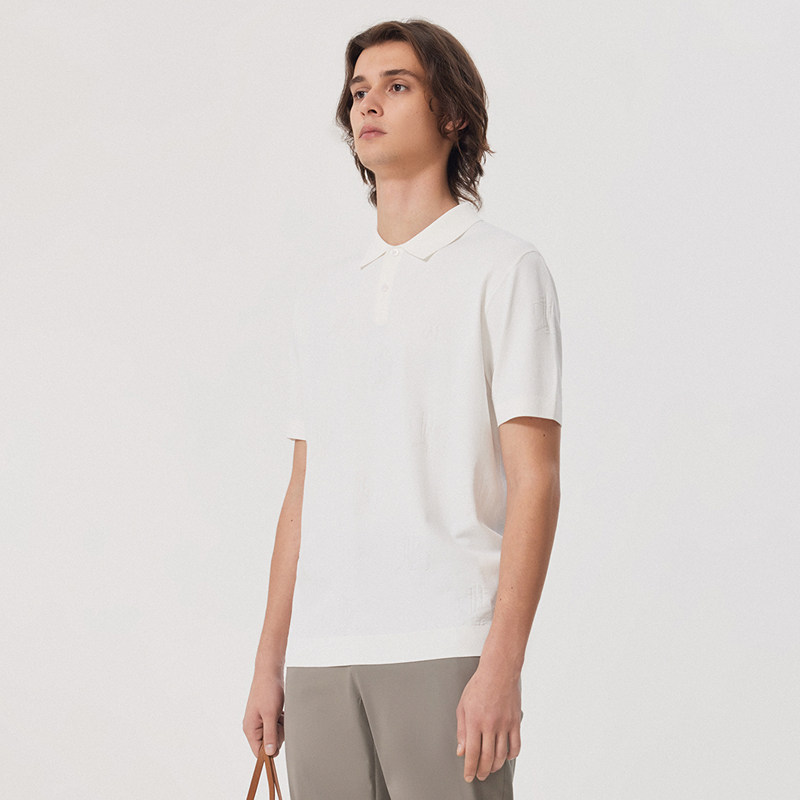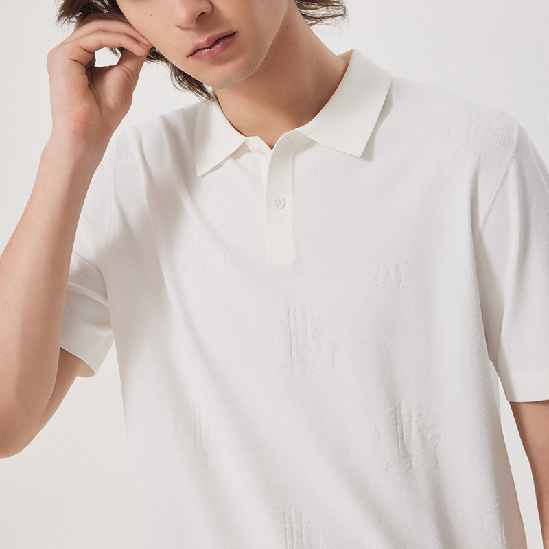 高级时尚 T恤男夏季 卡宾满身提花白色短袖 商务polo衫 商场同款