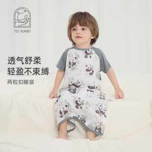 宝宝连体衣宽松 两粒扣睡袋儿童竹棉短袖 721星球婴儿睡袋夏季 短袖