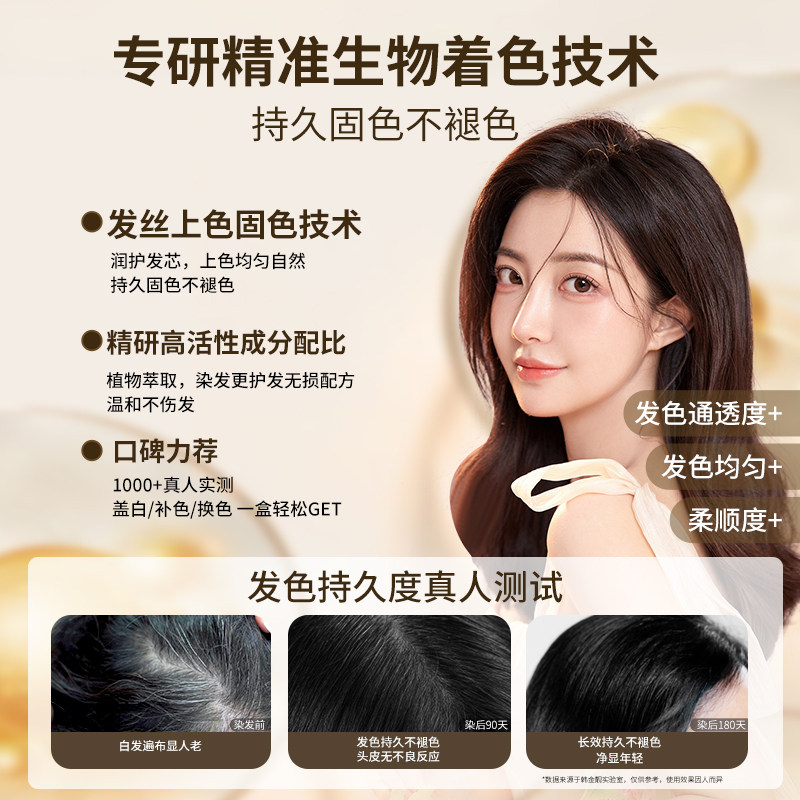 韩金靓果油染发剂官方旗舰店官网正品 植物天然纯膏遮盖白发黑茶色