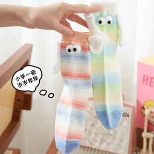 可爱2025新款 会拉手 薄款 夏季 渐变色磁吸中筒袜子 袜子男女情侣款