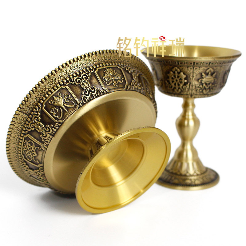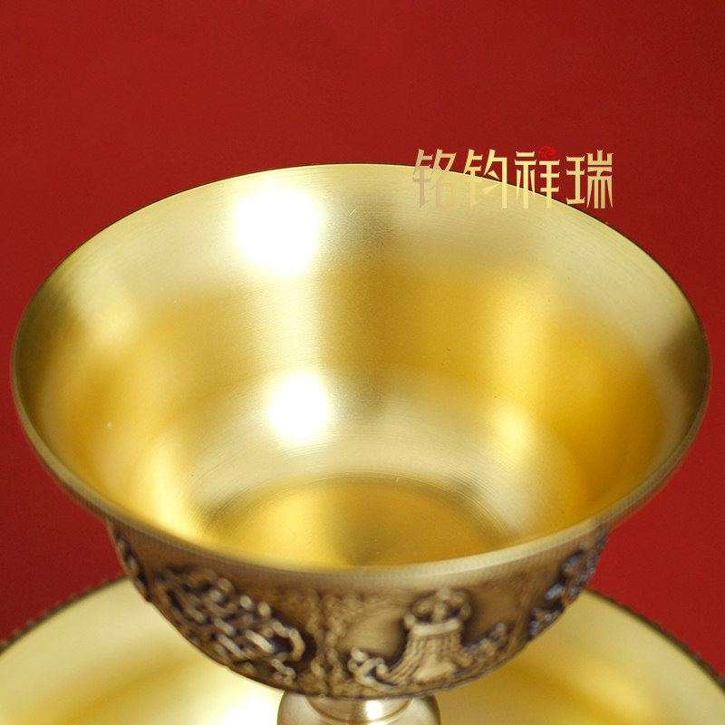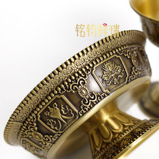八吉祥雕花护法杯密宗黄铜供水杯藏式 贡杯供佛供茶家用民族风家居