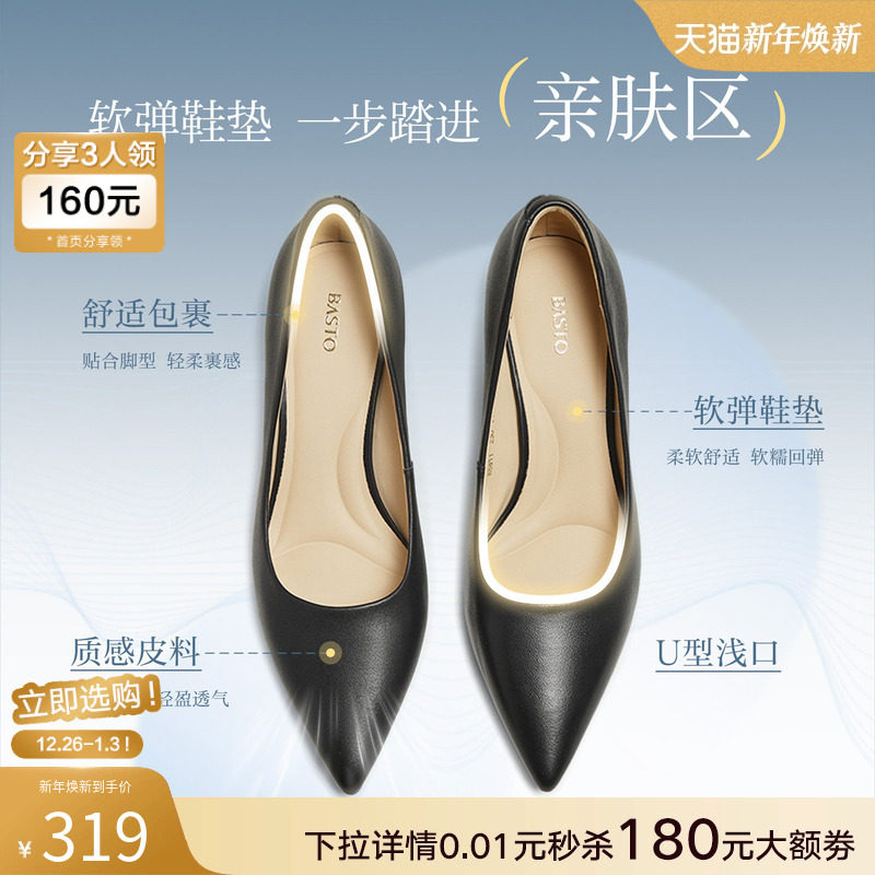 新款 复古蝴蝶结气质女鞋 黑色鞋 女法式 子 浅口尖头平底单鞋 2025春季