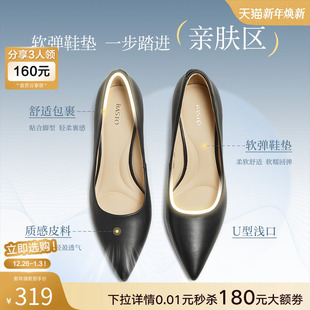 女士百搭真皮小猫跟中跟浅口通勤小皮鞋 羊皮尖头法式 绝美气质单鞋