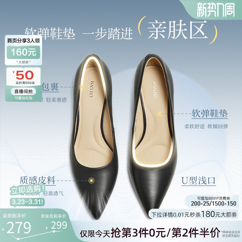 真皮婚鞋 尖头白色裸色高跟鞋 百思图26春新款 女单鞋 精致主义