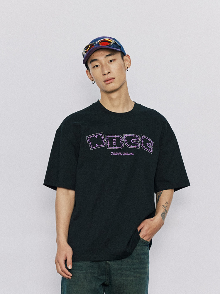 刺绣短袖 T恤 男女国潮宽松T NBCC补丁绣花短袖 WOW意志驱动夏季