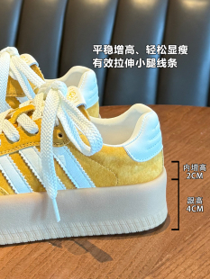 女款 休闲运动厚底内增高百搭小白板鞋 2026新款 女式 春季 黄色德训鞋