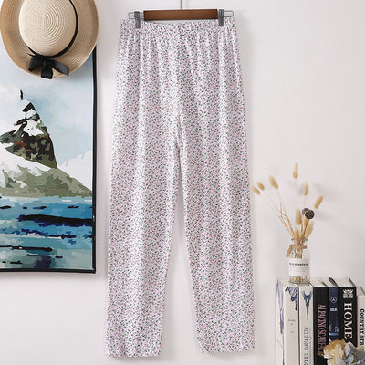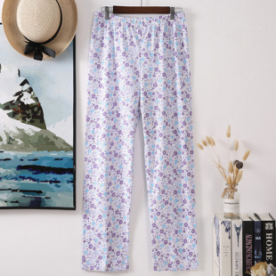 碎花长裤 老人纯棉女裤 宽松大码 睡裤 子 200斤老太太夏天薄款 奶奶裤